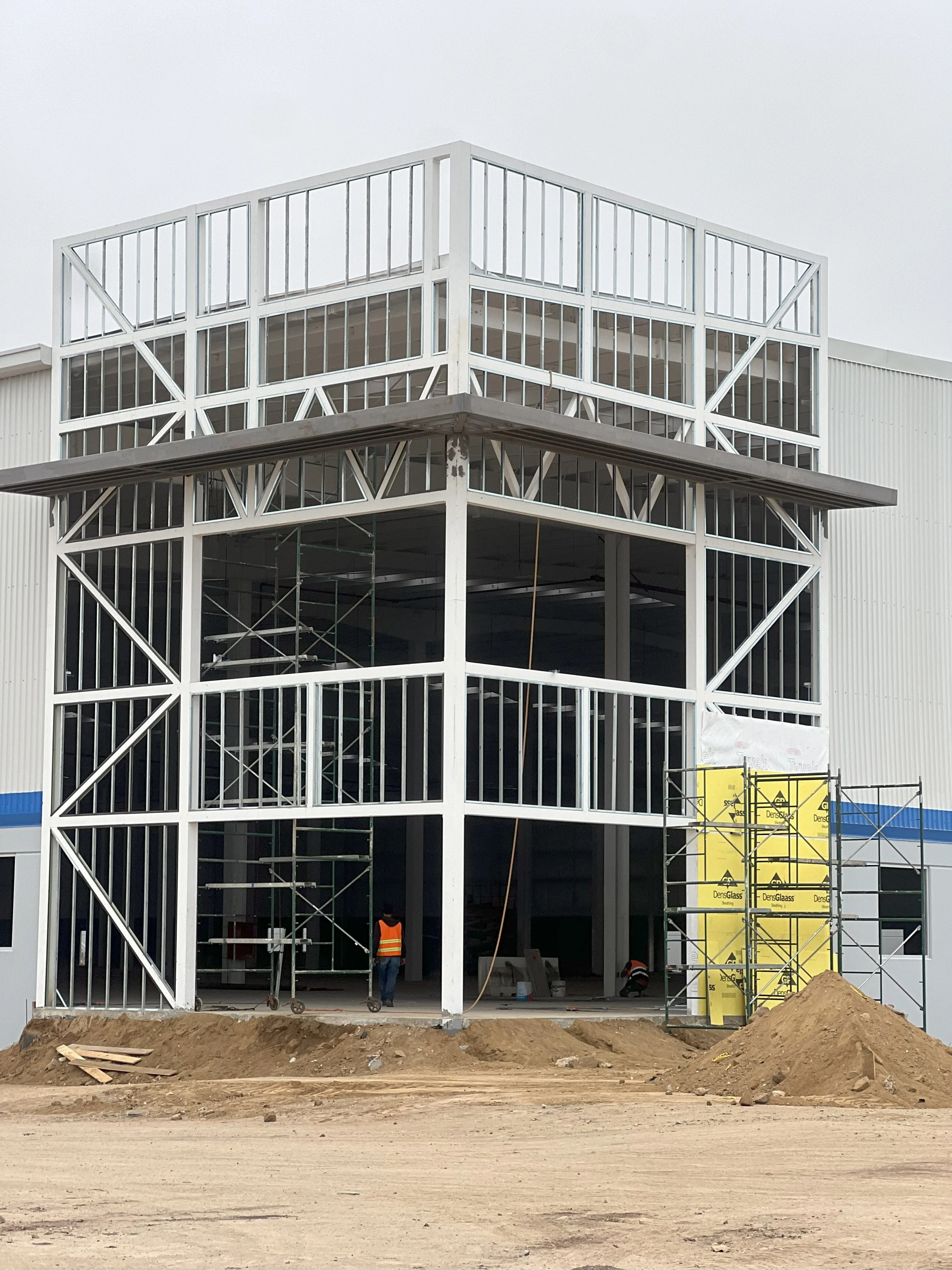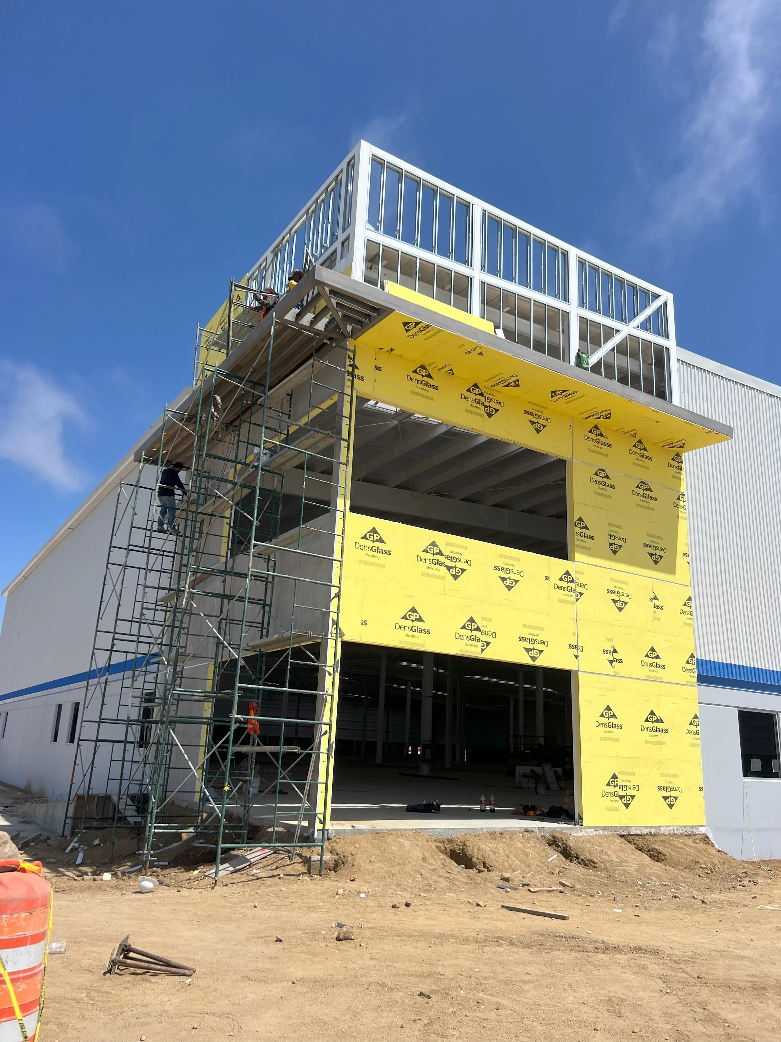 El presente proyecto tiene como objetivo la construcción de la fachada de una nave industrial situada en Studios Fox Rosarito B.C. La intervención contempla aspectos estéticos, funcionales y de seguridad, asegurando un diseño que se integre de manera armónica con el entorno y responda a las necesidades operativas de la instalación.