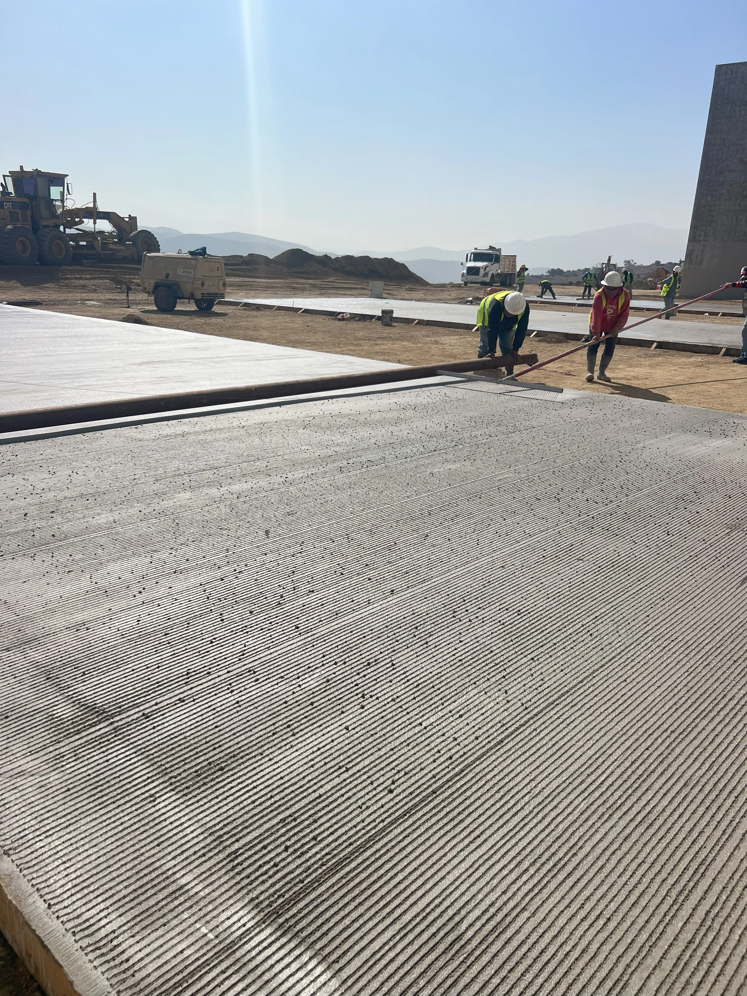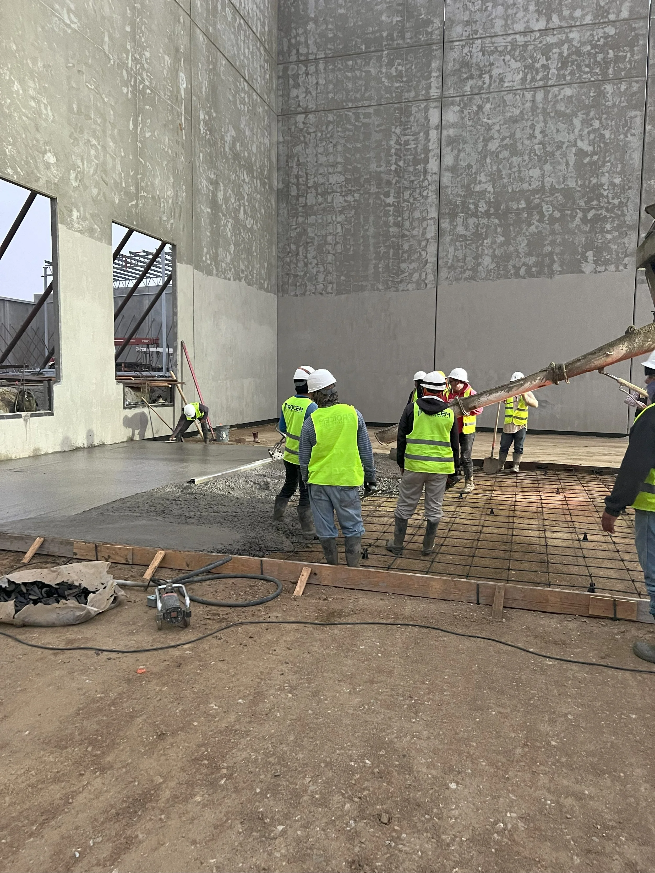 Una vez que el terreno está preparado y el diseño aprobado, se procede a la colocación del concreto. Este proceso involucra verter el concreto sobre la base compactada, utilizando vibradores para garantizar que no queden burbujas de aire. El concreto se extiende de manera uniforme, y se finaliza con un acabado superficial que proporcione adherencia, especialmente en áreas donde se manejarán cargas pesadas.