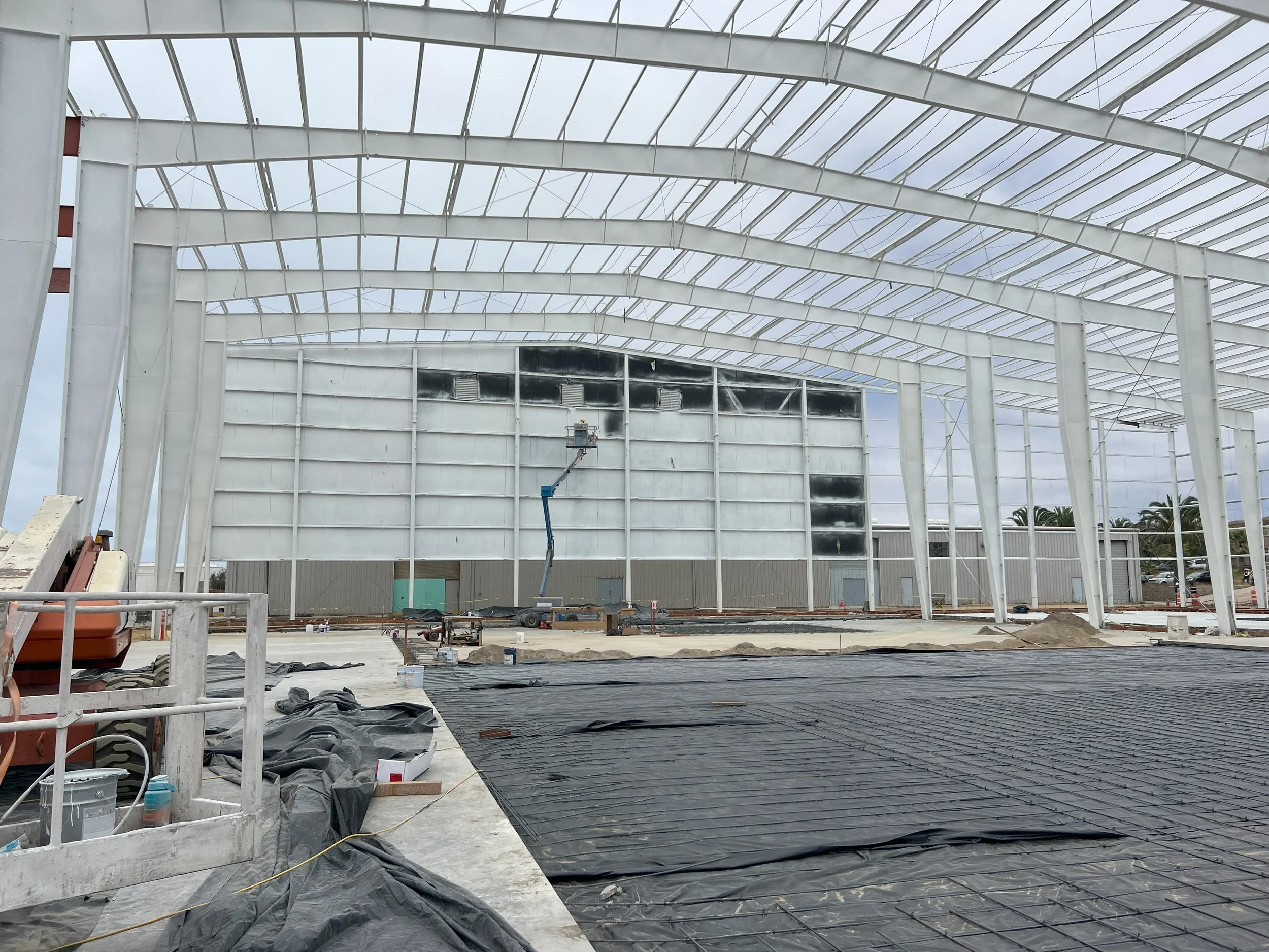 La nave, que presenta un desgaste considerable debido a la exposición a agentes atmosféricos y otros factores, requiere un tratamiento de pintura que garantice la protección y prolongue la vida útil de la estructura.